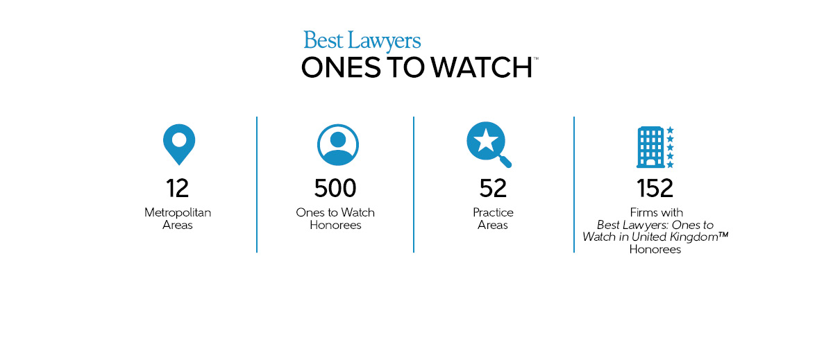 Interest in our awards reached record heights, with hundreds of voters supplying over 11,663 evaluations of their peers, which were used to determine this year’s results. Ones to Watch, a recognition dedicated to recognizing the top newly emerging legal talent in the the United Kingdom, highlights 12 metropolitan areas, 500 honorees, 52 practice areas and 152 firms with honorees.