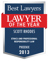 The Best Lawyers in America© named Mr. Rhodes Phoenix “Lawyer of the Year” for Ethics and Professional Responsibility Law in 2013, 2018, and 2020, and 2022; Phoenix “Lawyer of the Year” for Litigation – Municipal in 2021; Phoenix “Lawyer of the Year” for Legal Malpractice Law – Defendants in 2019; Phoenix “Lawyer of the Year” for Administrative Law in 2011. Mr. Rhodes is also AV Preeminent® Peer Review Rated™ by Martindale Hubbell® and has been listed in The Best Lawyers in America© in the categories of Administrative/Regulatory Law, Arbitration, Ethics, and Professional Responsibility Law, Legal Malpractice Law-Defendants, Litigation-Municipal, Mediation, and Municipal Law from 2009 through 2022. He was also named in Southwest Super Lawyers® in the categories of Administrative Law, and Politics in 2007, and in the categories of Professional Liability: Defense; State, Local & Municipal Law; and Utilities Law in from 2011 through 2019. The State Bar of Arizona selected Mr. Rhodes for the 2010 Member of the Year Award.